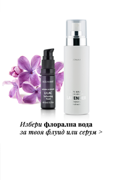 Преди няколко години получих алергия към козметични кремове. Дори и луксозните околоочни кремове на известни марки предизвикваха възпаление и подуване на зоната около очите ми. Известно време използвах само масла от различни продукти за да поддържам лицето си, но и това не беше добра идея. Тогава открих Вашите флуиди. Лицето ми е като детектор за химия, а Вашите продукти са едни от малкото, към които не проявявам никаква алергия. Харесвам Здравец и Люляк, но Розата си остава моя флуид. Не мога и да си помисля вече да ползвам друг продукт. Пръскам си лицето с флорална вода от Роза, а после нанасям с масажни движения флуида. Това е ритуал, който повтарям сутрин и вечер преди лягане. Понякога вечер заменям флуида с аромакомпозицията Фемина. Аз съм на 50 години, но много харесвам лицето си. Чувствам се прекрасно в кожата си, а това е достатъчно." yanita.stratieva
