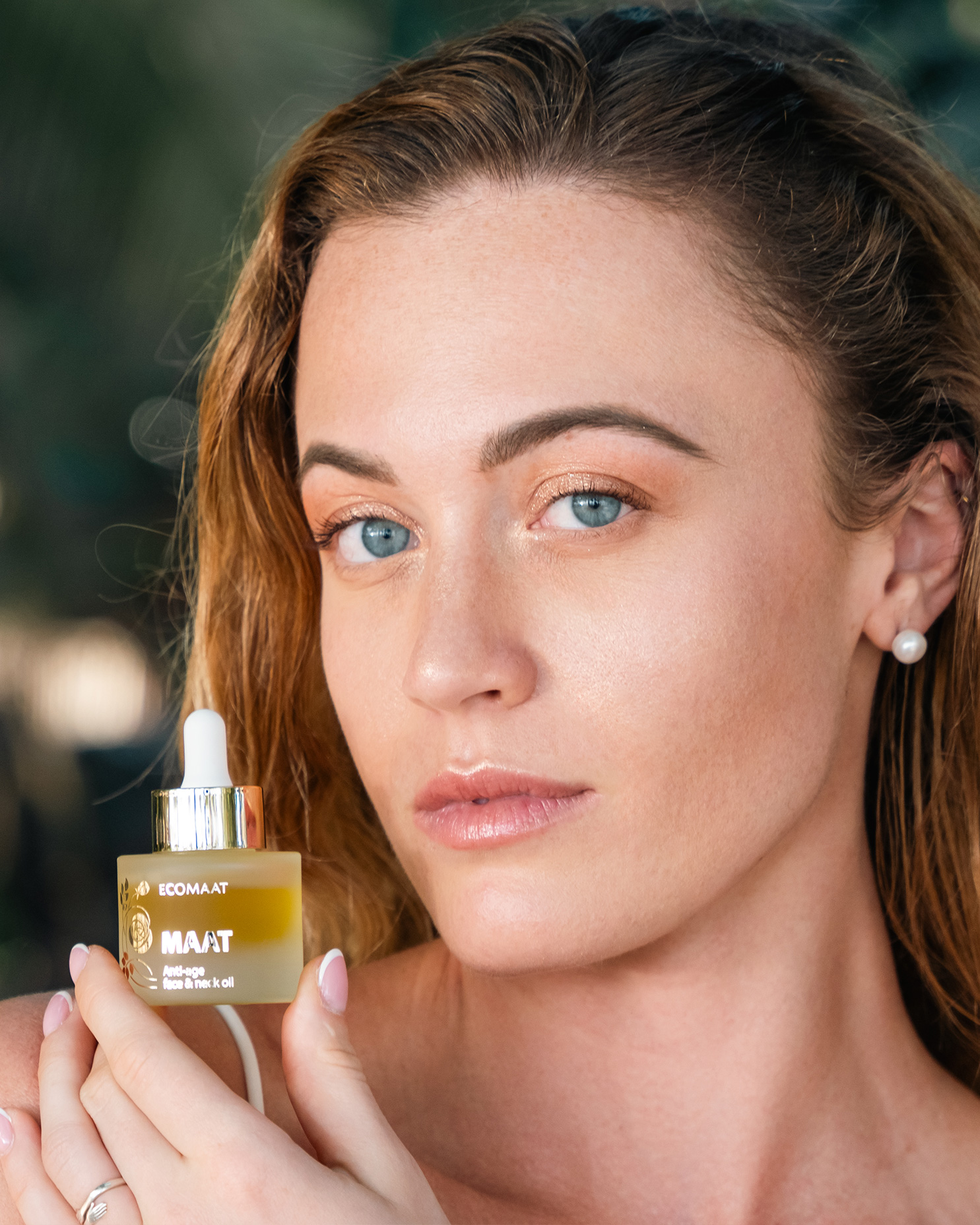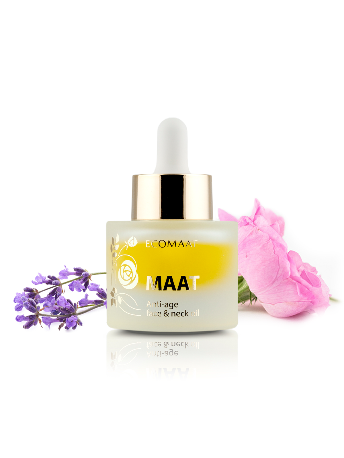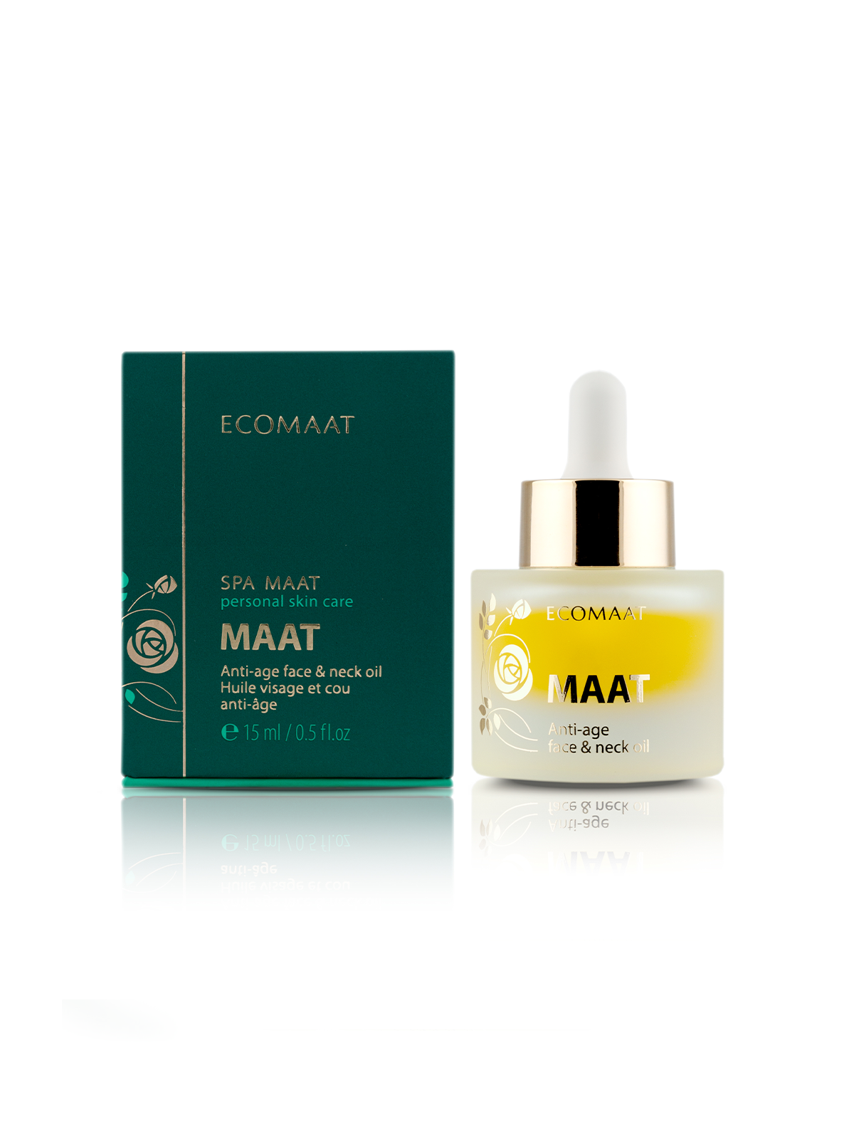 Масло за лице и шия МААТ антиейдж е със 100% натурален състав, с прецезно подбрани биосертифицирани етерични и базисни масла. Високо ефективна формула, без вредни за кожата синтетични съставки.