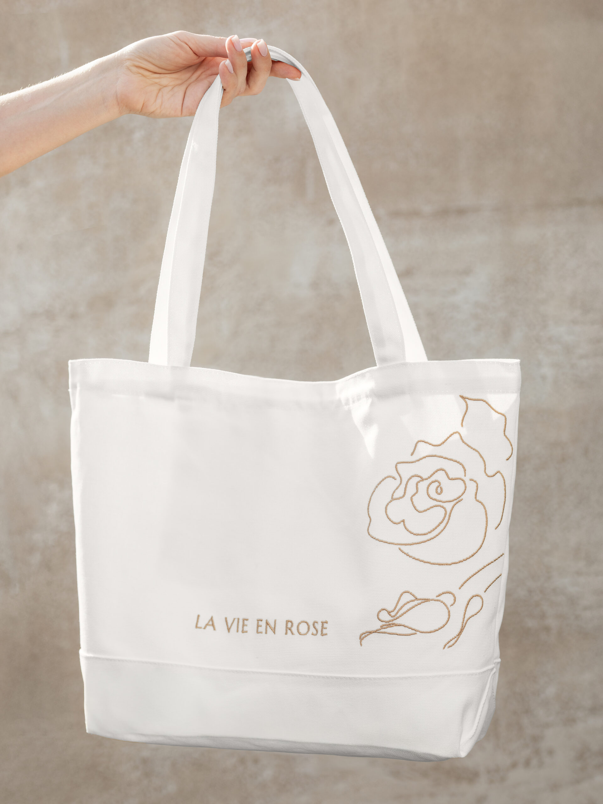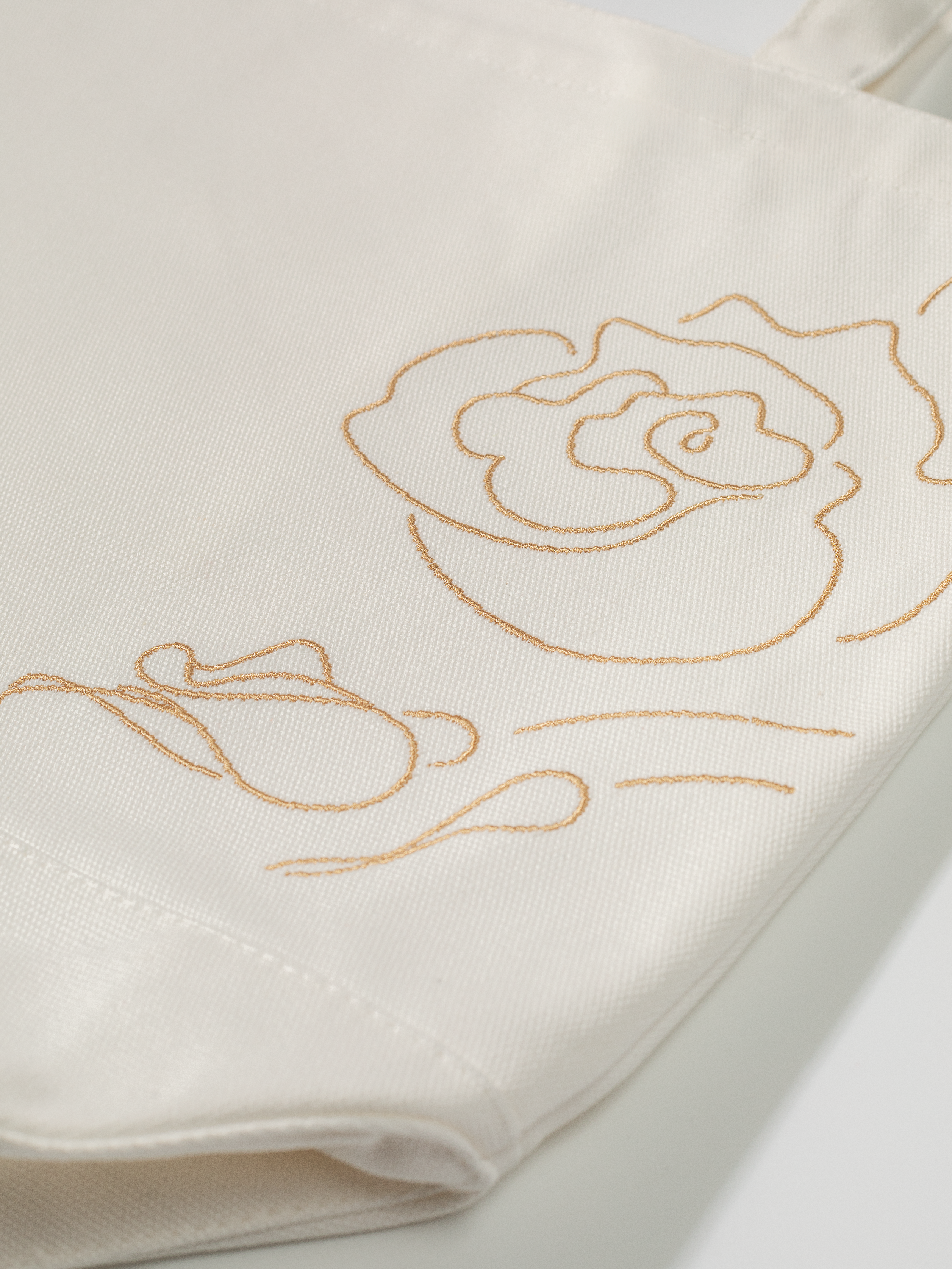 Чанта от висококачествен памук с изящна златиста бродерия.