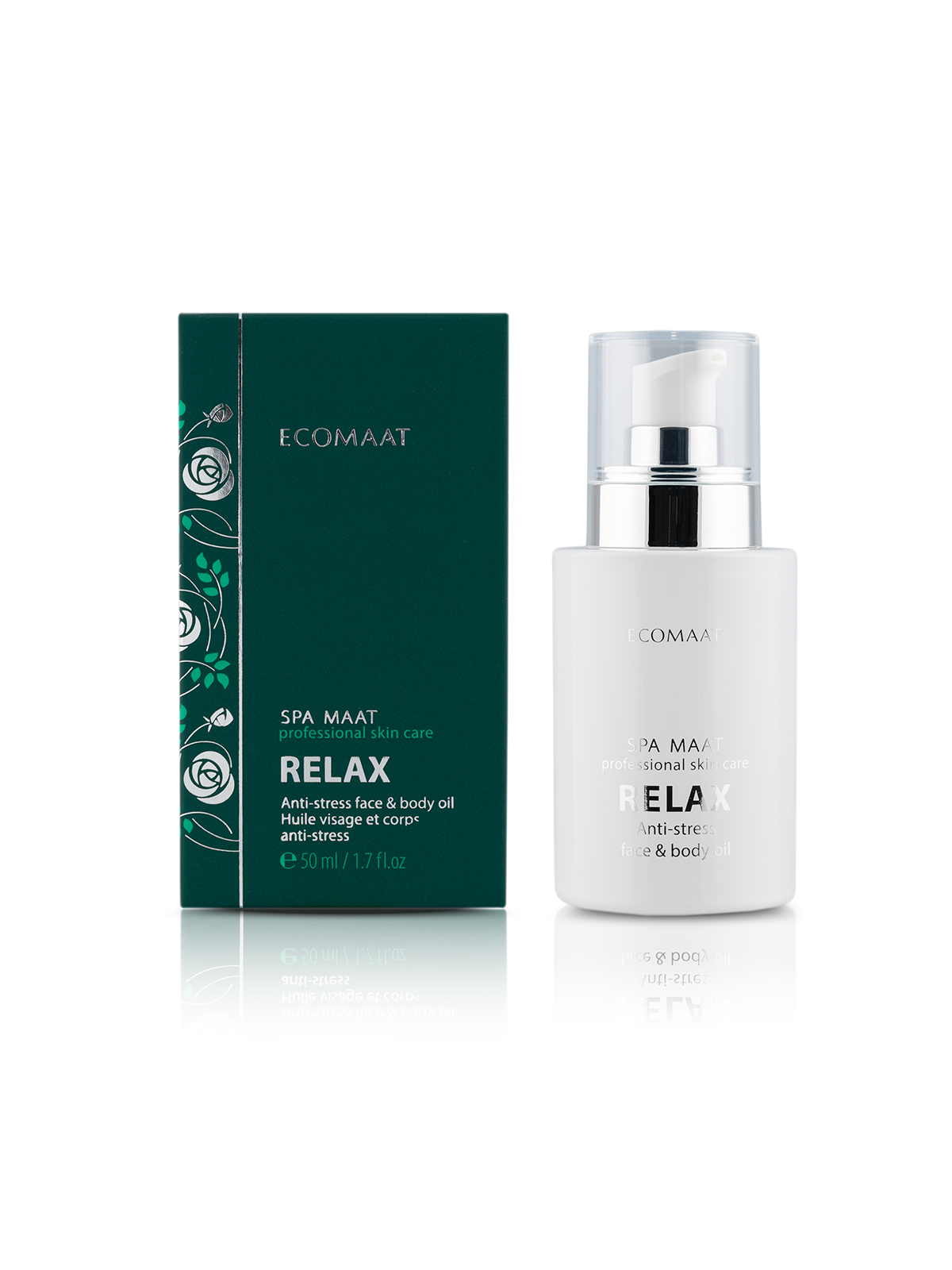 Маслото за лице и тяло „Релакс“ е 100% био сертифицирана ароматерапевтична козметика, подходяща както за професионална употреба в спа и козметичните центрове, така и за домашна употреба, като средство за масаж и грижа за кожата. Нанася се мануално, прави добра база за масаж и не оставя неприятен мазен слой след нанасяне.